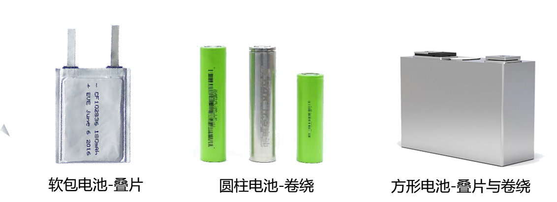锂电池从封装形式上分方形电池、圆柱电池和软包电池,不同的封装形式意味着不同的特性。在电芯卷绕过程中,软包电池为叠片、圆柱电池为卷绕、方形电池卷绕与叠片共存。